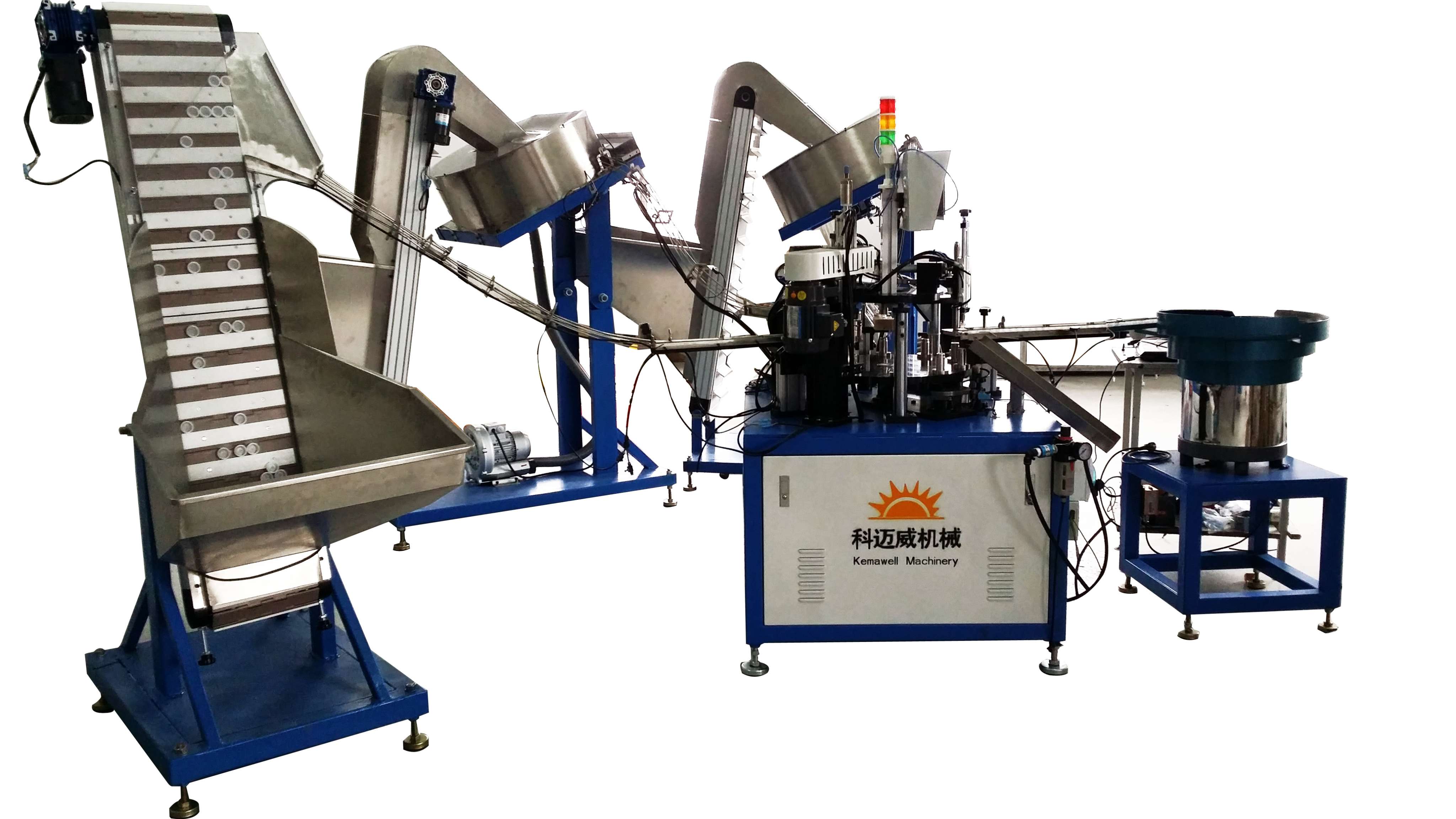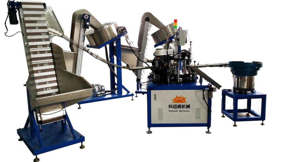 本機為全自動瓶蓋組裝機,用于白酒行業(yè)、飲料行業(yè)、化妝品行業(yè)瓶蓋的自動 裝配工作。每個配件均采用自動供料系統(tǒng),設(shè)備代替手工作業(yè),自動將多個零 件組裝在一起,降低污染,保證質(zhì)量,提高生產(chǎn)能力,達到無人值守狀態(tài), 一 人可看管多臺設(shè)備, 機器設(shè)有缺件檢測功能,缺件產(chǎn)品視為半成品, 由半成 品通道卸料。組裝機機械結(jié)構(gòu):采用機械傳動,連續(xù)運行機構(gòu),保證設(shè)備運轉(zhuǎn) 性能穩(wěn)定,電氣結(jié)構(gòu)采用 PLC 控制、變頻器等先進的控制技術(shù),機器設(shè)有人機 交互界面,操作簡易,可對機器多項參數(shù)進行設(shè)定,并具有自動計數(shù)功能:設(shè) 定產(chǎn)量自動停機,節(jié)約時間,為后續(xù)工作提高效率。